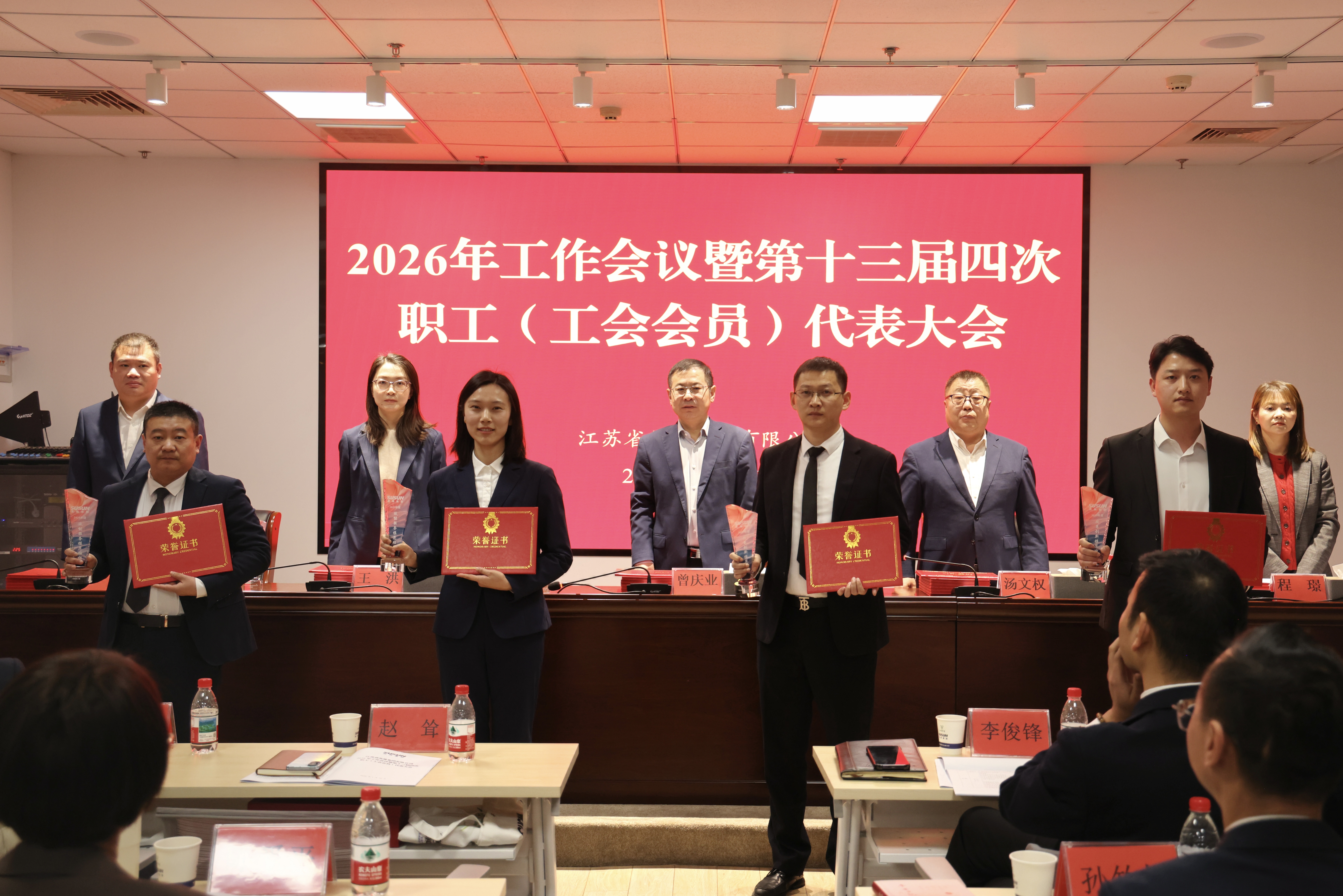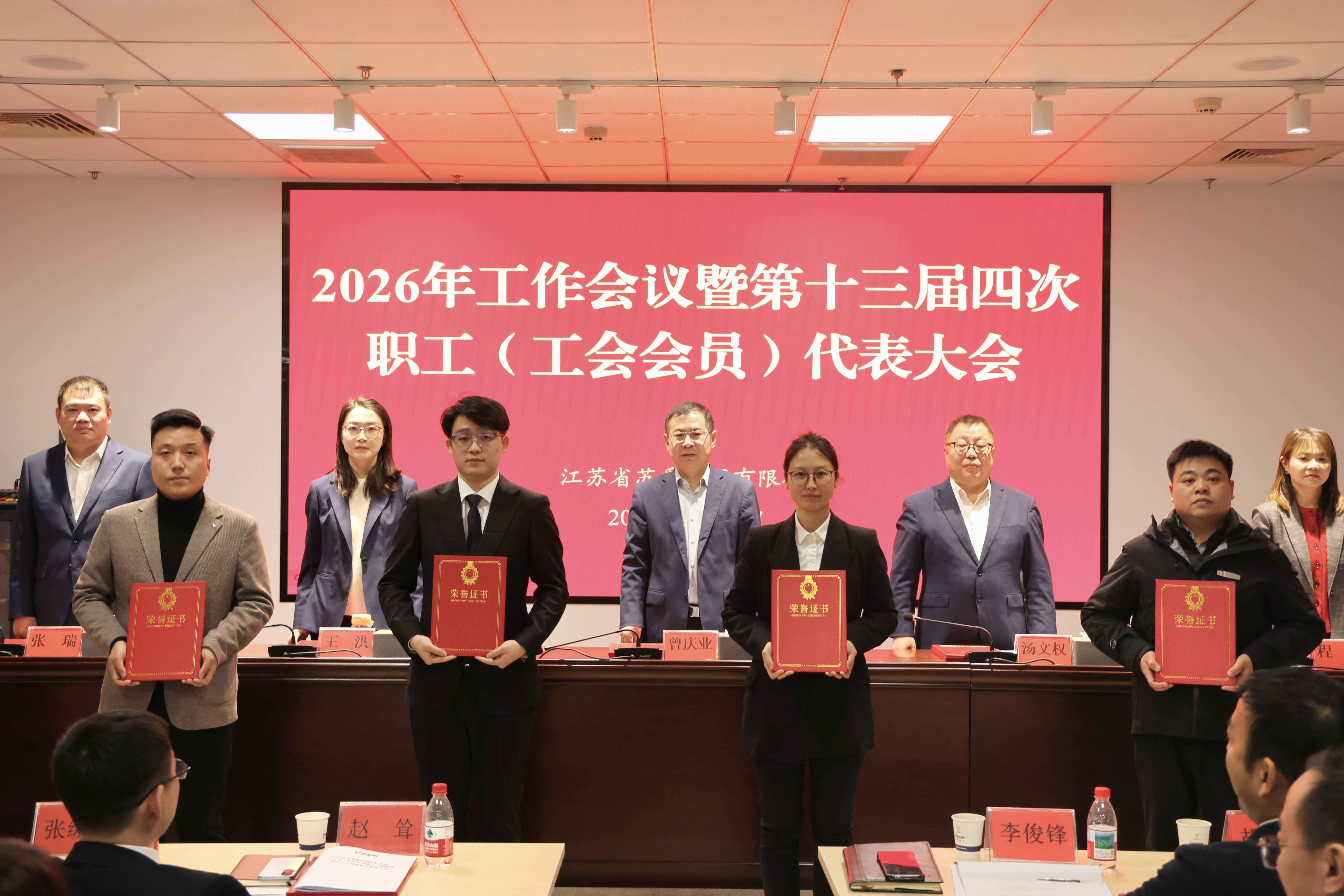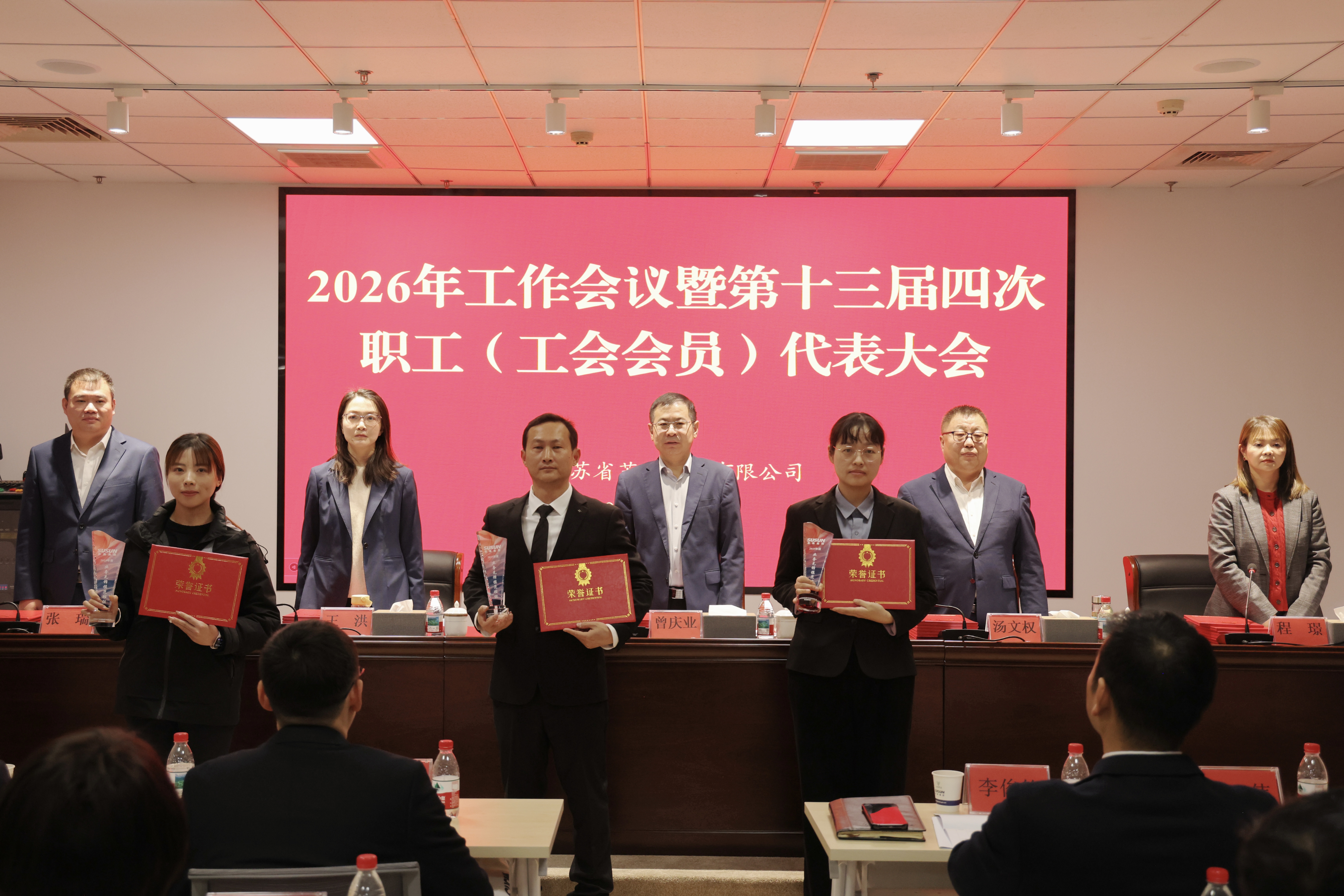 1月26日,江苏省苏舜集团有限公司2026年工作会议暨第十三届四次职代会顺利召开。公司党委书记、董事长曾庆业作工作报告,副总经理、工会主席汤文权作工会工作报告,副总经理程璟宣读表彰决定。公司领导班子、子公司及职能部门负责人、职工代表、2025年度先进代表等参加会议。