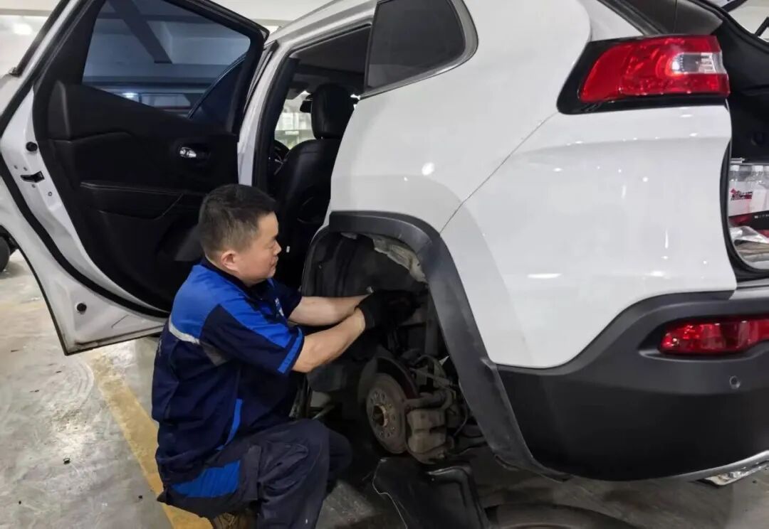 在不少人看来,钣金或许是一项非常枯燥的工作,姚万青则认为,钣金是技术与修复艺术的融合。他常说:“这不仅是技术活,更是良心活。把每辆车当成自家车来修,才对得起肩上的责任。”曾有一台指南者事故车,因碰撞造成车架变形、纵梁断裂、悬挂系统错位等结构性损伤,车门、翼子板等多部位钣金凹陷。想要车辆恢复原厂平整度,难就难在复杂损伤的融合敲击、拉伸、热收缩等工艺,稍不留神就可能造成二次形变。姚万青用橡胶锤配合垫铁,一点点敲击凹陷处,让钢板慢慢舒展开来,回归原始形态,遇着大范围变形,就靠液压顶铁施加反向力,一点点把车架“拉”回正轨,高强度钢板得加热到600℃再快速冷却,用热收缩技术消除内部应力,断裂处重新焊接时,他更是反复确认强度与密封性,绝不给锈蚀留半点机会。整整150个小时,他像雕琢艺术品般打磨着每一处细节,“车身受损太严重,想做到毫无瑕疵,只能靠耐心手工磨。”他回忆道。