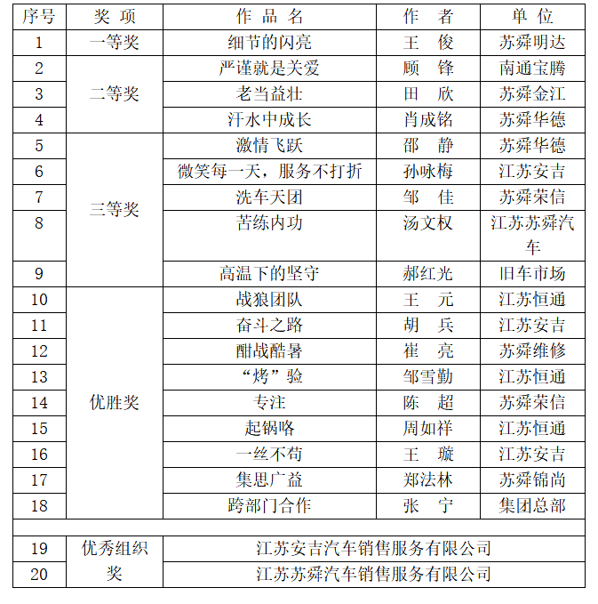 本次手机摄影比赛以“我的企业,我的家”为主题,借助“苏舜家园”微信公众号开展,向集团全体员工共征集百余幅参赛作品,内容紧紧围绕主题,充分展现了职工工作、学习和生活的精彩瞬间。本次比赛通过集团工会评选和微信投票两个环节,截至投票结束,共有12791人次浏览该条公众号,17209人次参与了此次投票,评选出一等奖1个,二等奖3个,三等奖5个,优胜奖9个。